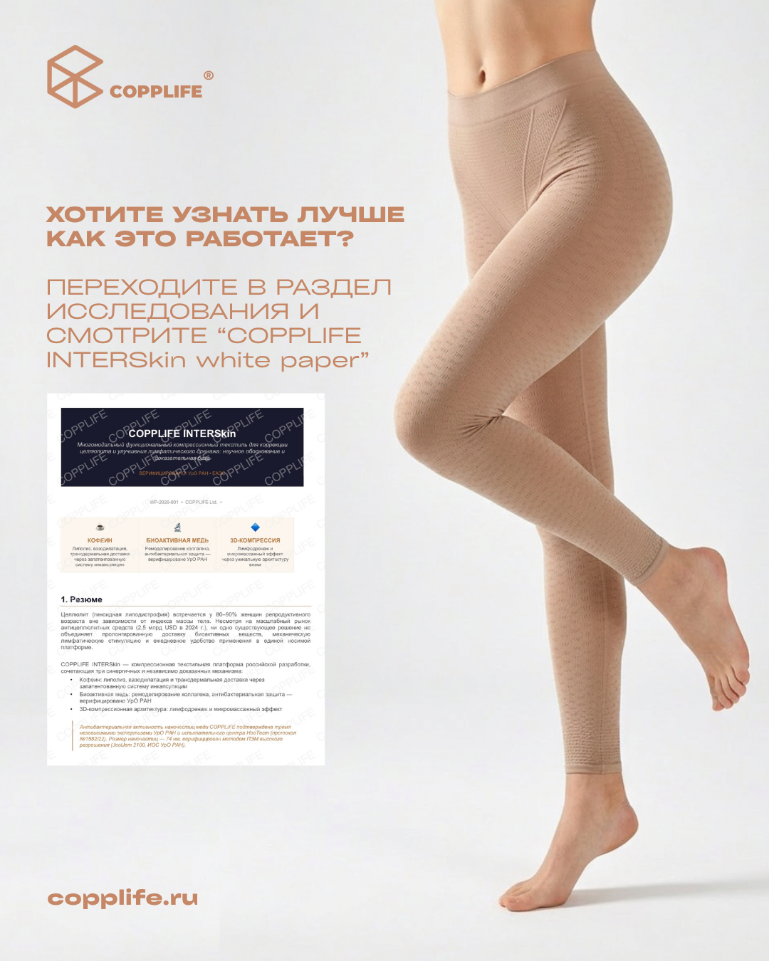 COPPLIFE INTERSkin PRO создан как носимая технологическая система, которая работает с этим состоянием в течение дня — в движении, без процедур и без компромиссов в комфорте.